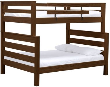 TimberFrame bunk beds feature massive corner posts with thick ladder rungs in between using mortise and tenon construction. A removable guardrail is included on the front with a full-length guardrail at the rear of the upper bed. Can be separated into 2 beds or set up as a loft.Read More