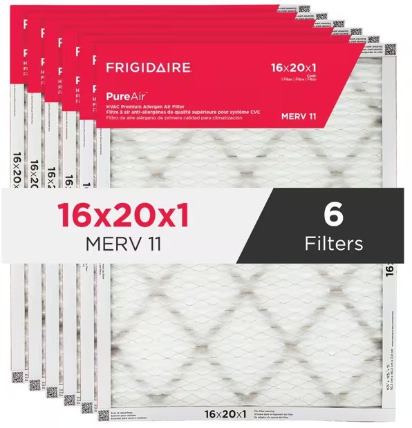 Enjoy cleaner, fresher indoor air with the PureAir® MERV 11 Premium Allergen Air Filter. This filter captures unwanted allergens and helps maintain optimal airflow in your home, filtering out airborne particles such as pollen, household dust, dust mite debris, carpet fibers, lint, pet dander, smoke, smog and more. A pleated design, electrostatic dual wire backing, and air flow indicator arrow provides high performance and simple installation. For best performance, replace every 3 months. 16x20x1 filter is compatible with standard residential furnace, air conditioner, or HVAC systems.Read More