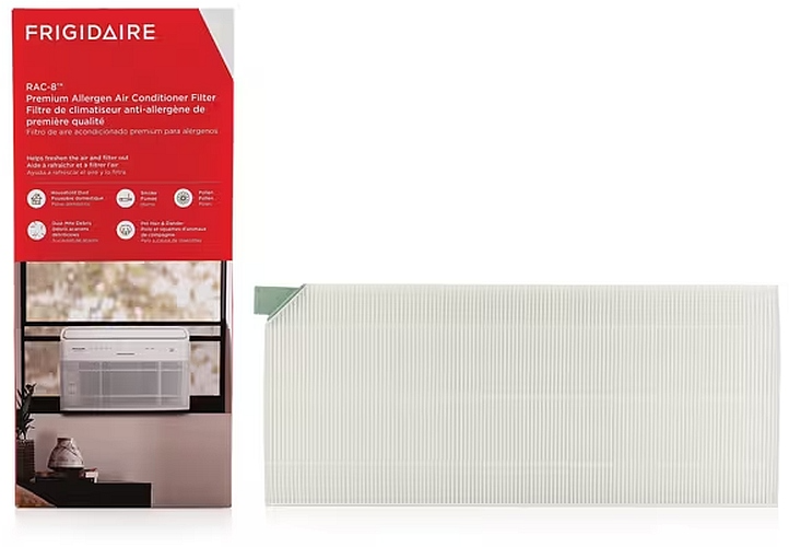Get more out of your air conditioner with our MERV 14 rated PureAir® Premium Allergen Filter that captures pollen, household dust, dust mite debris, pet hair, dander, smoke, smog and other fine particles. This advanced filter works with your air conditioning unit to continuously filter the air throughout the day. The filter features a high-performance pleated design and is simple to install for optimal performance of specified Frigidaire Window Air Conditioners.Read More