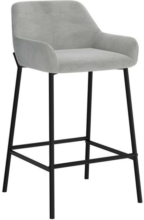 Contemporary counter height stool perfect for casual or formal seating at a kitchen island or a rec room bar. The plush cushioned seat and back will provide hours of comfort. The sturdy metal frame is finished in a matte black metal which allows for an easy match with any decor. The rich, velvet upholstery looks elegant, is on trend, and is easy to wipe clean.Read More