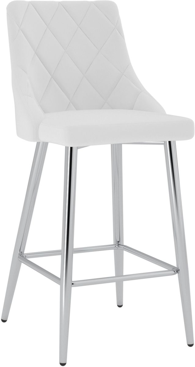 Comfortable, served seating atop a fixed height frame gives this counter stool stability and reliability. The diamond-stitched patterns on the faux leather cushioned upholstery will provide hours of comfort and the polished chrome finish will take your decor to the next level. Elevate your kitchen counters with these gorgeous contemporary stools.Read More