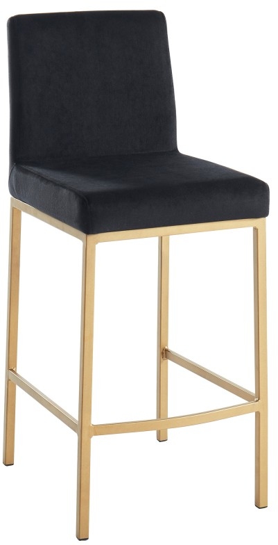 Contemporary counter height stool with a rich-looking combination of velvet upholstered seat and matte aged gold stool frame. The low back provides ample back support while giving the stool a sleek, modern look. Great for a casual breakfast bar or for the fancy basement bar where you can spend hours conversing with guests.Read More