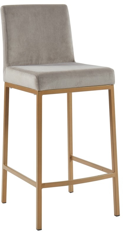 Contemporary counter height stool with a rich-looking combination of velvet upholstered seat and matte aged gold stool frame. The low back provides ample back support while giving the stool a sleek, modern look. Great for a casual breakfast bar or for the fancy basement bar where you can spend hours conversing with guests.Read More