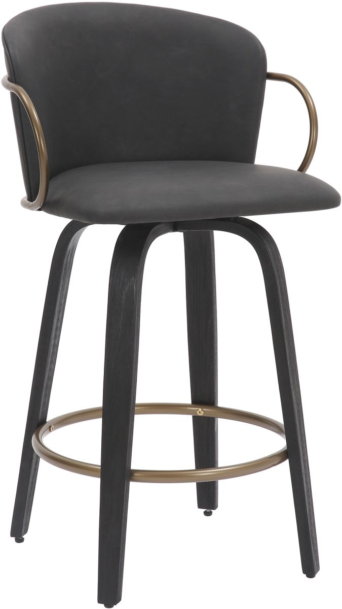 Vintage charcoal faux leather seat and black wood grain legs