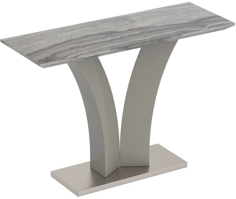 Embrace the classic look of marble and make it modern with this fun console table. All the finishes - from the marble-look paper veneer to the stainless steel wrap on the base - give this piece a high-end look without breaking your budget.Read More