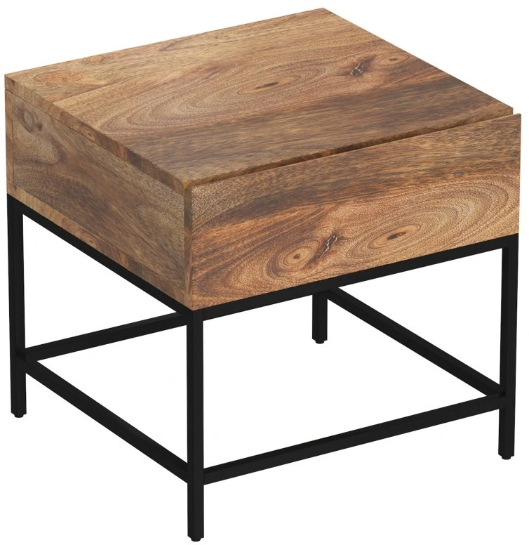 This rustic modern accent table has a spacious drawer for things that you want out of the way but still within reach - think remote controls, reading glasses, and coasters. The black wrought iron frame adds a stylish component to this piece while providing sturdy support.Read More