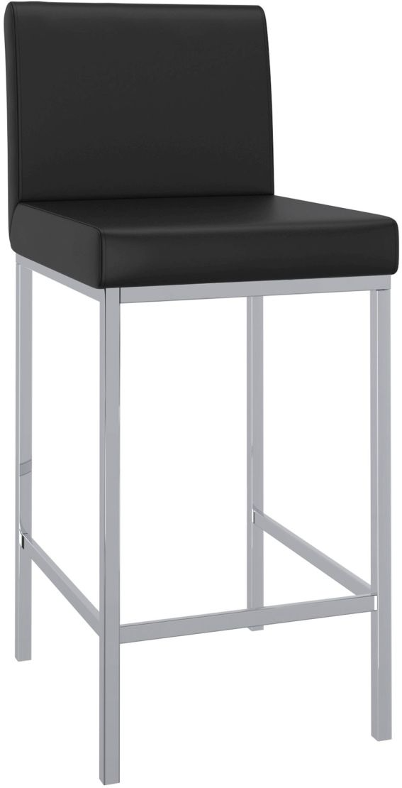 Contemporary counter height stool with faux leather and shiny chrome finishing. Combined, these two materials create a modern piece that will work will with any decor. The low back provides ample back support while adding to the minimalist appeal. Great for a casual breakfast bar or for the fancy basement bar where you can spend hours conversing with guests.Read More