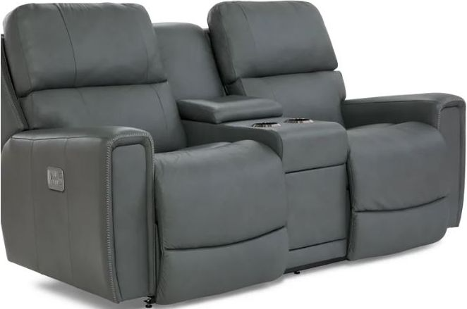 Sleek padding adds modern flair to the Apollo Power Reclining Loveseat with Headrest and Console. Tall backs recline and bucket chaise seats with leg rests offer a cozy space to land. A handy center console keeps drinks and remotes in your orbit.Read More