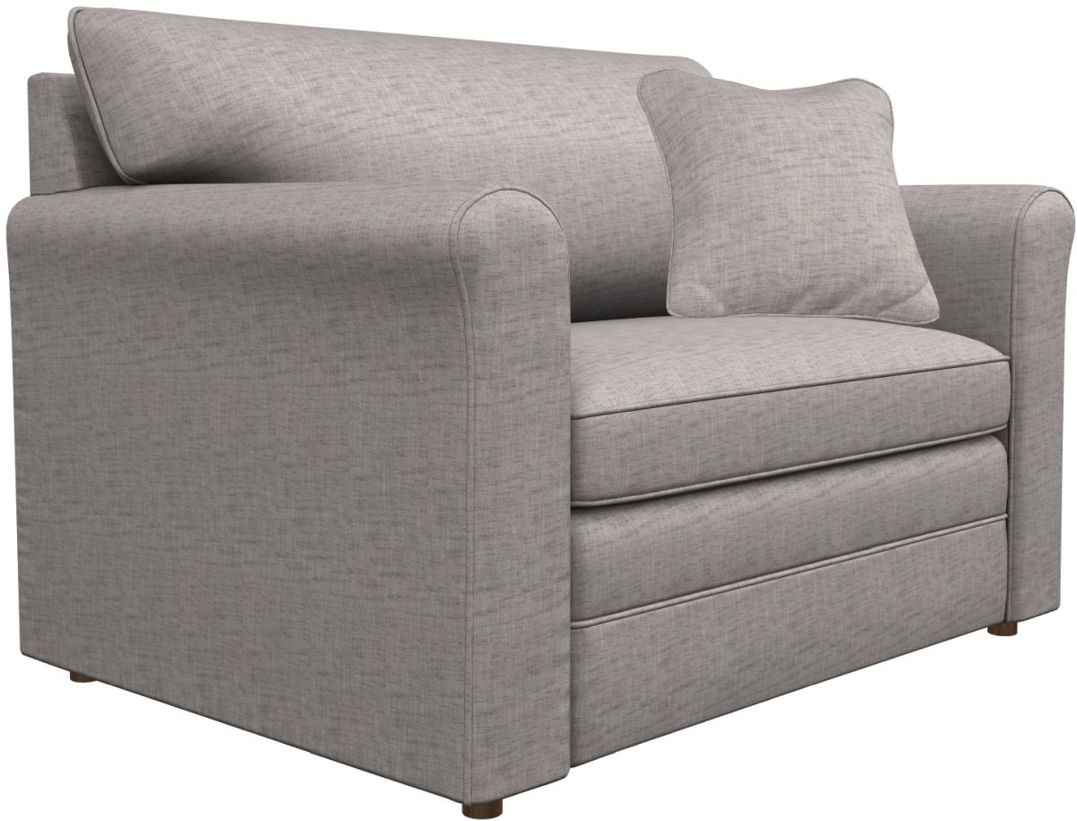 Turn any room into a stylish and functional guest room with the Leah Twin Sleep Chair. Its sleek profile is perfect for smaller spaces, yet it opens up to become a super comfortable twin bed, complete with a Supreme Comfort™ quilted innerspring mattress measuring 5.5” thick. By day, this sleeper is a true beauty too, with curving rolled arms, welt trim and a patented ComfortCore® cushion that provides optimum support for a long or short sit. Make it yours with your choice of fabrics and other available upgrades. Includes one 18” accent pillow.