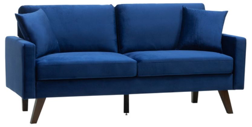 Meanwhile, plush blue velvet upholstery blends wonderfully in your room, especially with the matching throw pillows. For a winning combination of amenity and flair, you can't go wrong with the Bellerophon sofa. Also available in grey velvet.