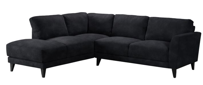 The Dorian epitomizes the ideal contemporary loveseat-chaise sectional - clean lines, generously stuffed cushions, gently angled backs and armrests, subtly flared legs in a dark matte finish - all swathed in a rich black velvet fabric that is alluringly soft and blends pleasingly with any décor style.Read More