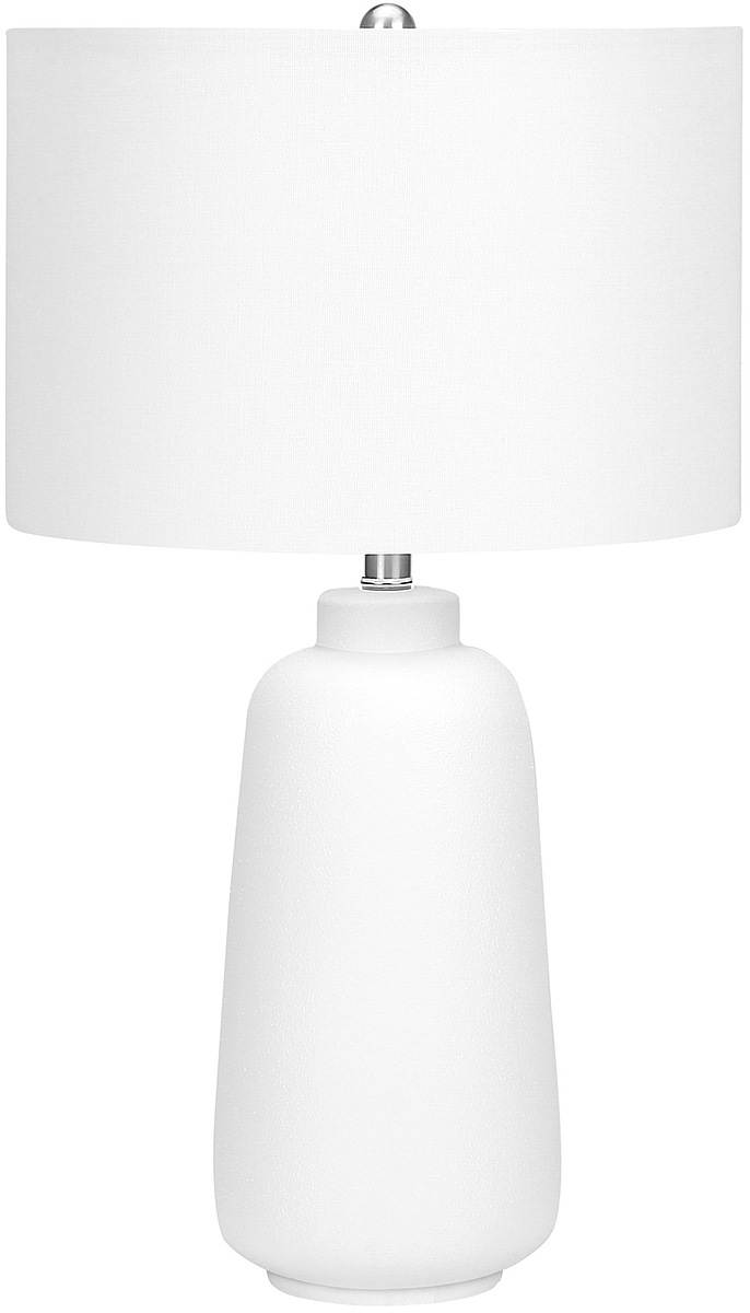 This beautiful modern style 26"H table lamp with a subtly textured cream ceramic base and ivory linen drum shade, topped with a round silver finial is the perfect way to add a contemporary touch in your living room, office or bedroom.Read More
