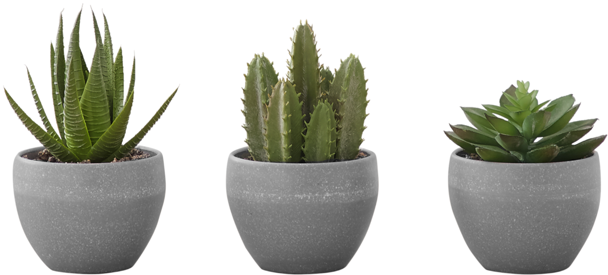 Add a touch of greenery to your home or office with this set of 3, 6" tall artificial succulent plants
