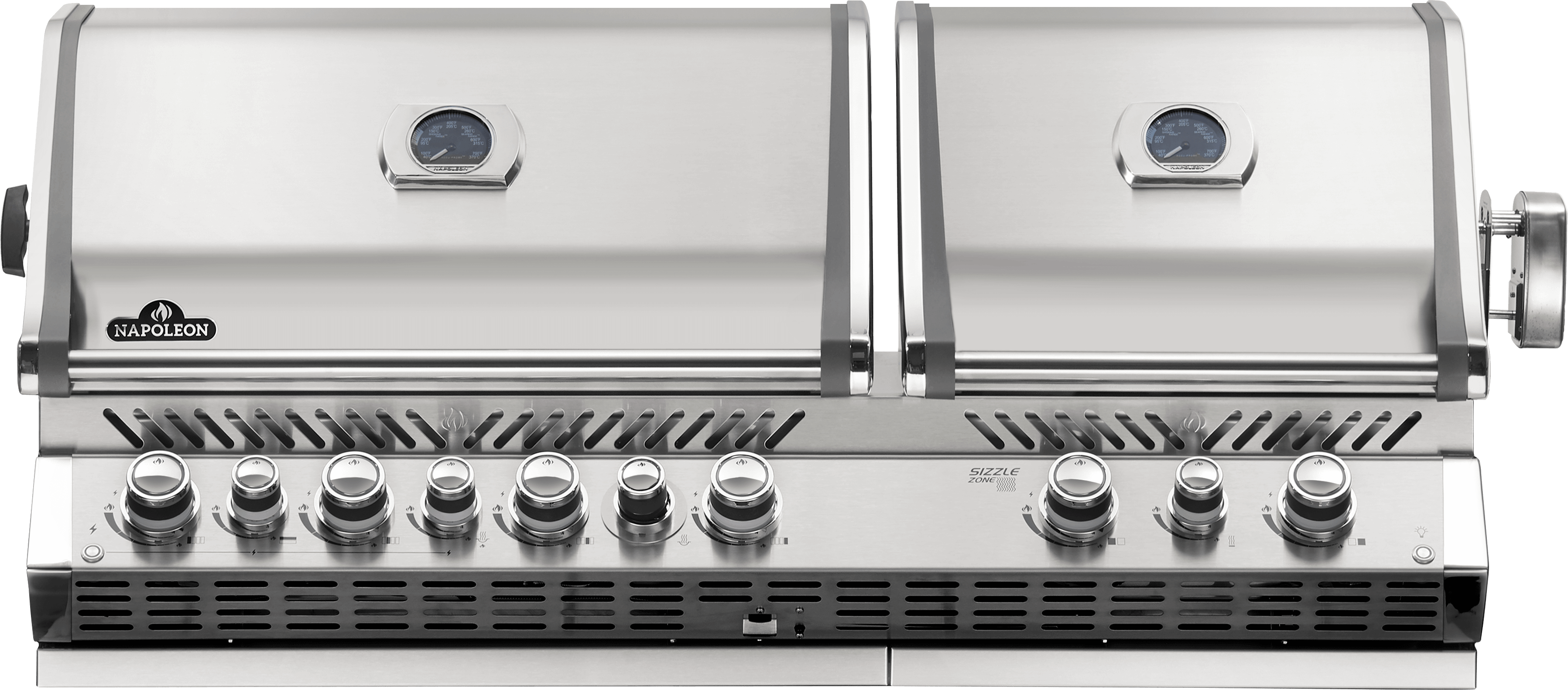 The Built-in Prestige PRO™ 825 Natural Gas Grill with Infrared Rear Burner is beautiful and spacious, perfect for feeding a crowd, or just a couple people. Two heads are better than one, and the same is true for this grill. Two separate grill heads allow for a multitude of cooking options including direct searing over infrared heat, indirect cooking, and using the rear burner for perfect rotisserie meals. You'll know it's a Napoleon with the iconic WAVE™ cooking grids and proximity lighting. Turn this grill into a smoker by using the integrated wood chip smoker tray. The LED Spectrum NIGHT LIGHT™ Control Knobs have near limitless colour options making night-time entertaining a breeze, and they also glow red when the gas is left on as a safety feature. This means you always know which burners are lit, making it easier to get the perfect sear or the ideal indirect grilling position. Stainless steel construction with chrome accents provide unparalleled durability and style making this grill the crowning jewel of your outdoor kitchen.Read More