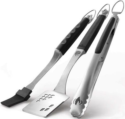 Napoleon's Executive 3 Piece Toolset is made from cast stainless steel for added durability and ease of cleaning. All three pieces feature ergonomic handles that are easy to grip and comfortable to hold. The large spatula is perfect for steaks and other large food with its bladed tip and serrated edge. The easy-lock stainless steel tongs are always ready for action, their comfortable grip making it easy to hold and move your grilled delicacies. Don't forget to splash on the sauce with the silicone basting brush. Be the boss of your grill with the Napoleon Executive 3 Piece Toolset.Read More