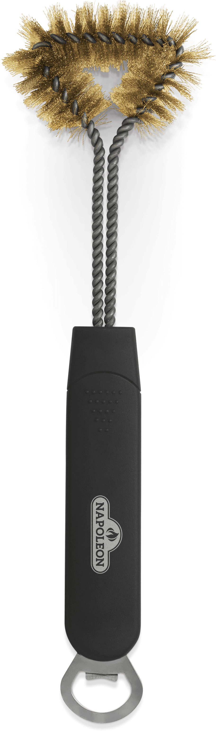 Use this Three-Sided Brass Grill Brush as part of your regular grill maintenance routine. Perfect for cleaning a grill's porcelain coated cast iron cooking grids, this compact grill brush is perfectly portable, with a stay cool handle to provide the right amount of leverage. The integrated bottle opener doubles as a tool hanger making it easy to keep this handy utensil close by. Brush your cooking grids while the grill is still hot to remove any stuck on food residue. Remember, clean grills are happy grills.Read More