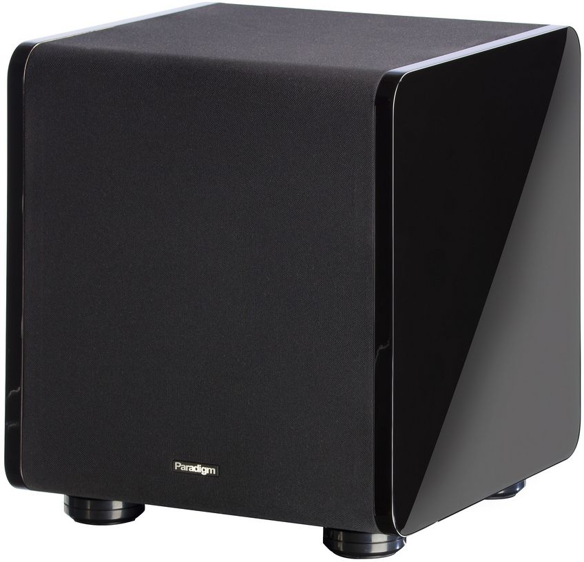 Paradigm® Cinema Sub 8" Gloss Black Subwoofer features single driver, bass reflex, high-velocity low-turbulence resitive ports, built-in amplifier, and flexible positioning: gloss side up or cloth side up with feet.Read More